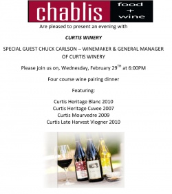 CURTIS WINERY - WINE DINNER