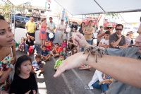 Steve of Saving Wildlife Int'l captures the audience with one of his animals